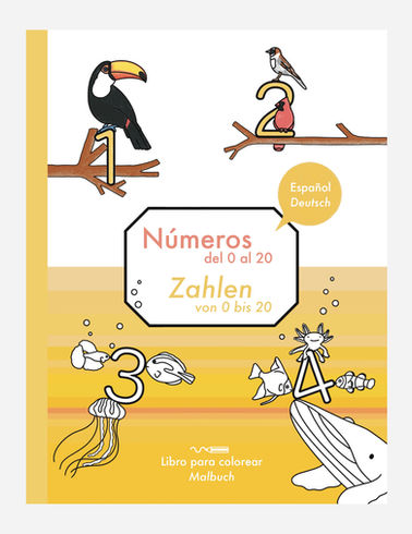 Primeros números para colorear, ideal para niños y niñas de kínder y preescolar. En este libro para colorear bilingüe, encontrarás los números del 0 al 20 y muchos animales para contar.